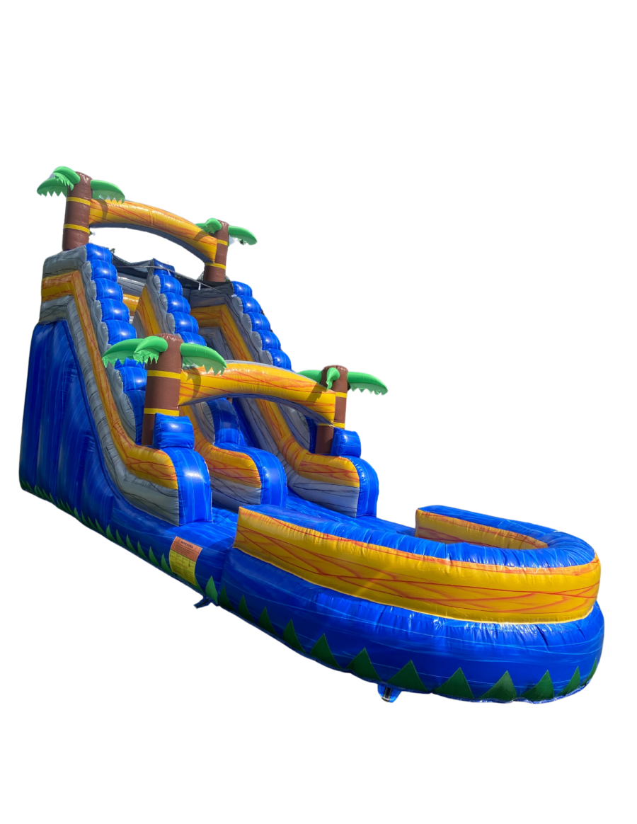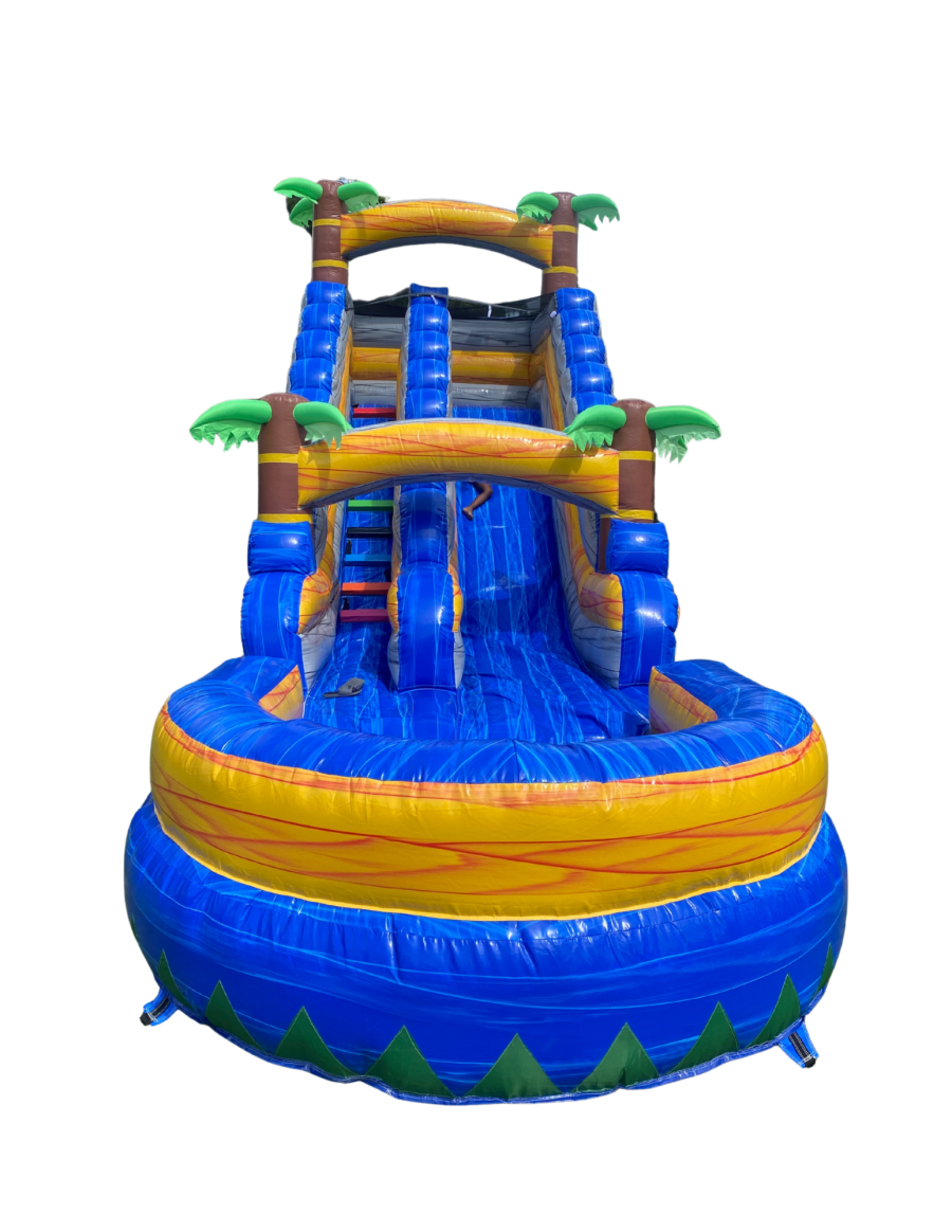 • 🏝️ Eye-Catching Design: With its tropical palm tree accents, this water slide effortlessly enhances any outdoor space.